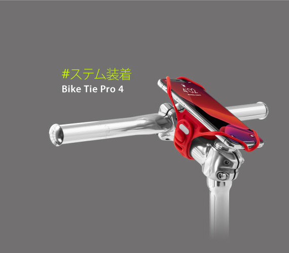 Bone自転車用スマホ ホルダーBike Tie Pro4は、四代目となり機能性が更に進化。バンド部分をスマホ本体により密着させることで、安定感がさらにアップ。各種ハンドルタイプに装着でき、Bike Tie Pro4はステムへの装着も可能。