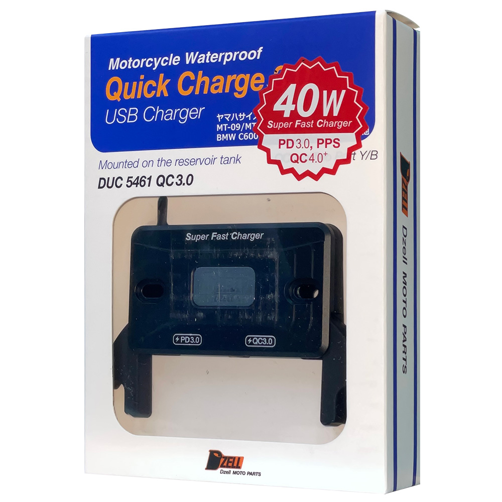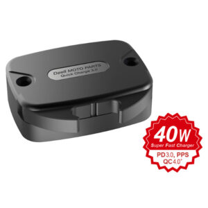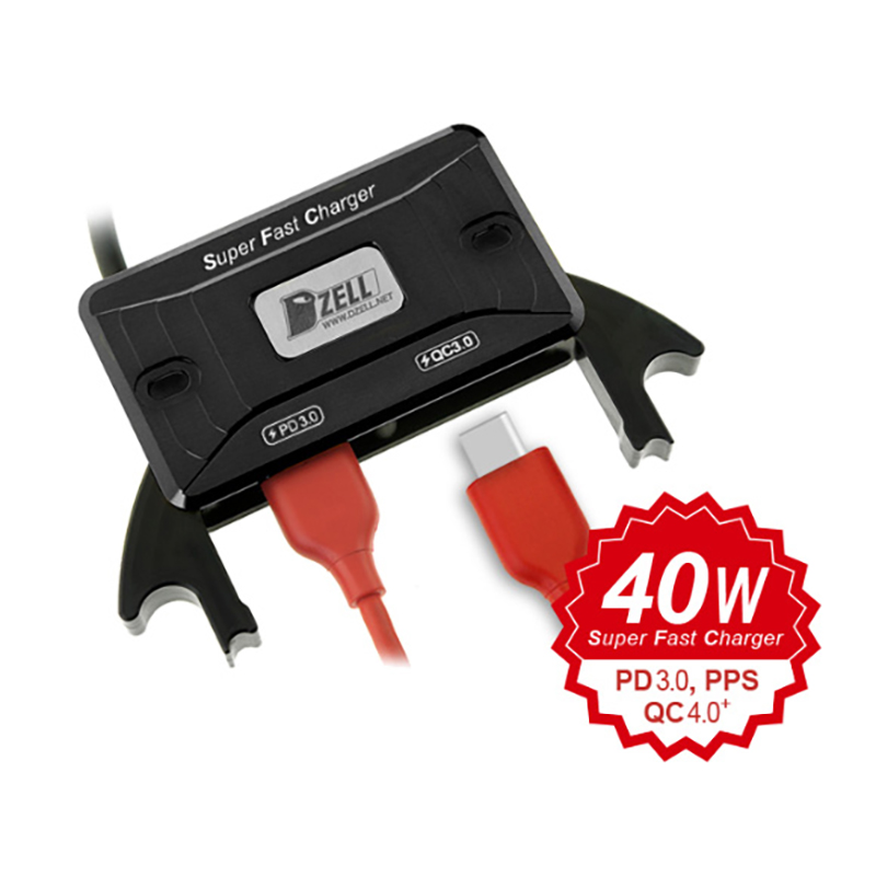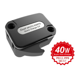 車両のブレーキマスターキャップと同形状のUSB給電ポート、急速充電対応(2ポート同時使用可)。