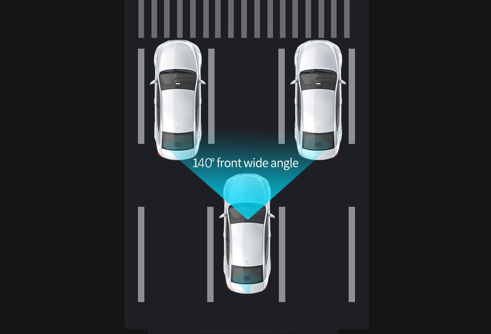 レンズ画角140°。3レーンをカバー。運転の強力な証拠を提供し、画面消灯録画もサポートします。